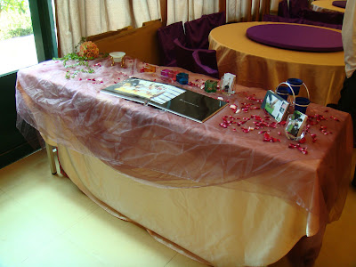 這是放婚紗像簿 謝卡的桌子 可是出自於黃婷婷之手喔
