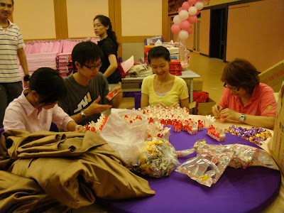 大家在前一晚努力的將喜餅和歸位及裝袋 另外還要做一些小加工 辛苦了大家